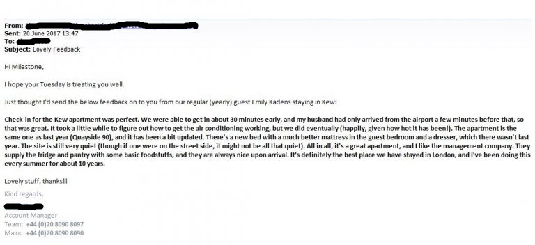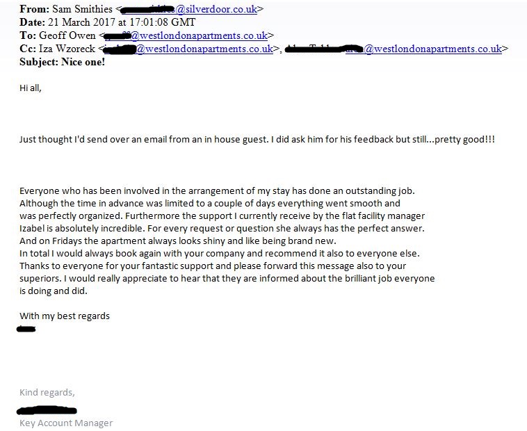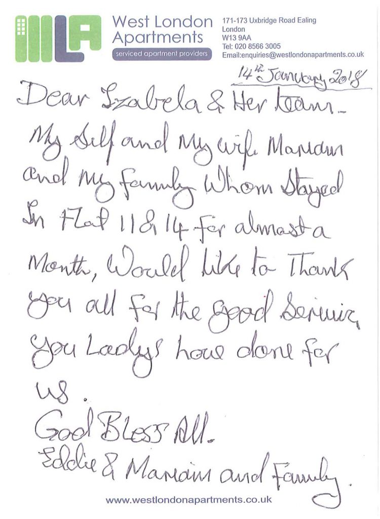 testimonials Testimonials WHAT DO OUR GUESTS SAY ABOUT THEIR EXPERIENCE WITH WEST LONDON APARTMENTS? Click on the carousel of images below to find out.